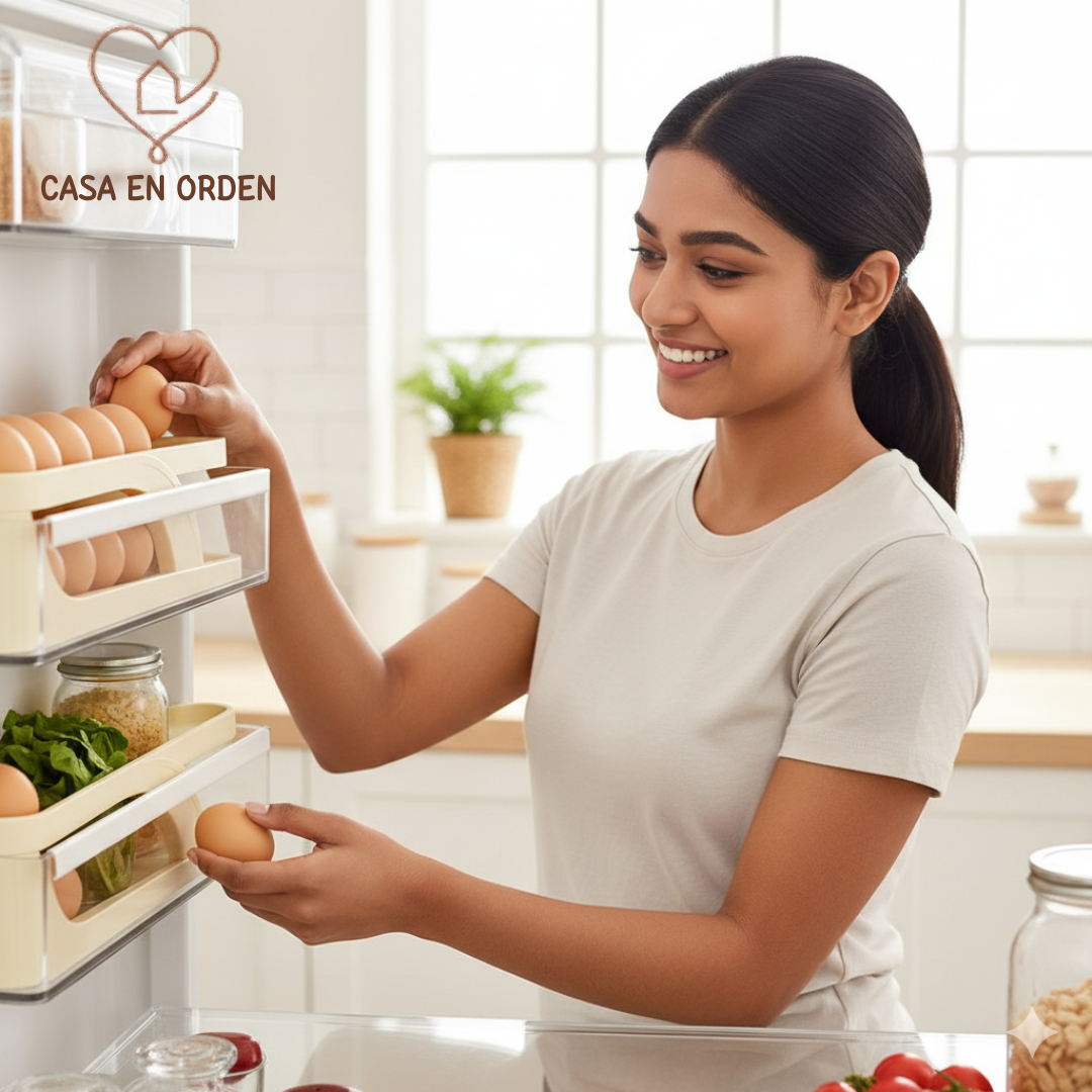 "Sentí un alivio instantáneo. Por fin un organizador que me da espacio y me permite ver todos mis huevos. ¡Me encanta mi refrigerador ahora!"
